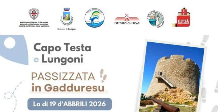 CAPO TESTA E LUNGONI- Passizzata in Gadduresu 19 Aprile 2026 Un’intera giornata per riscoprire la nostra terra attraverso i sensi e le parole della tradizione! Mattina: escursione a Capo Testa con le guide dell’Istituto Chircas. Un percorso unico raccontato interamente in gallurese. Pomeriggio: un tuffo nella storia a “Lu Brandali” e alla Torre, accompagnati dalle…