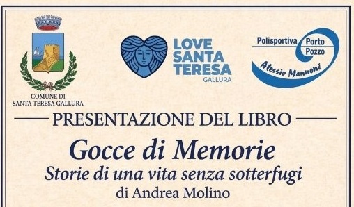PRESENTAZIONE DEL LIBRO – Gocce di Memorie. Storie di una vita senza sotterfugi di Andrea Molino  Presentazione del libro “Gocce di Memoria” di Andrea Molino.Vi aspettiamo per scoprire le “storie di una vita senza sotterfugi” in un incontro aperto a tutti. Sabato 18 Aprile – ore 17:00 Biblioteca di Porto PozzoInterventi di: P. Bardanzellu, Z. Pucci, C.…