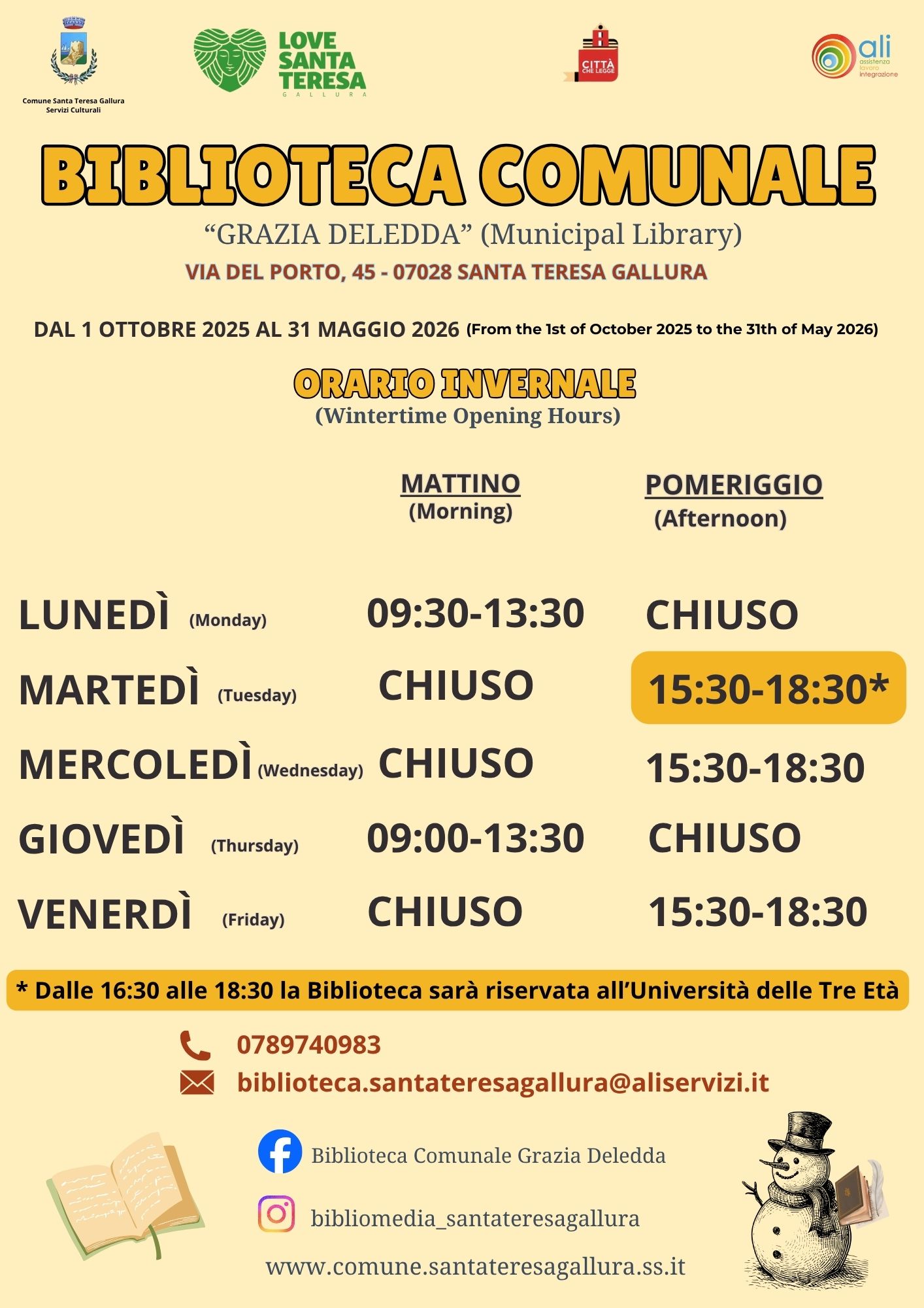 Lo Sportello Linguistico Gallurese del Comune di Santa Teresa Gallura organizza, anche per il 2025, la Scóla di Linga Gaddurésa. Il corso, della durata di 30 ore, è gratuito ed è rivolto a tutti gli appassionati di lingua e cultura gallurese. Le lezioni si svolgeranno in presenza. Le iscrizioni sono aperte fino a sabato 22…